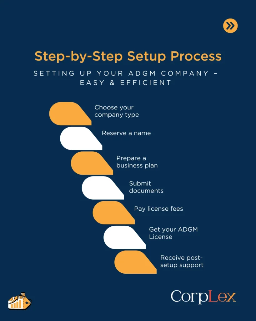 To establish a company with ADGM, the ADGM company setup process is easy and simple as follows: