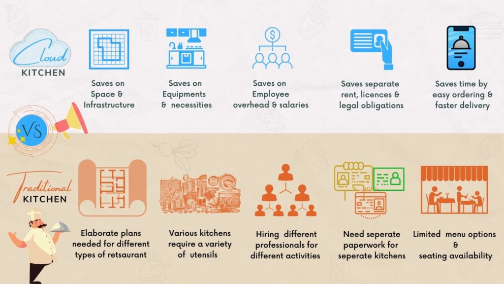 This is where the concept of Cloud Kitchen/Internet Kitchen/Invisible Kitchen/Ghost Kitchen/Dark Kitchen/Virtual Kitchen/Satellite Kitchen comes into play.